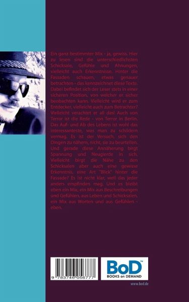 Ein ganz bestimmter Mix - ja, gewiss. Hier zu lesen sind die unterschiedlichsten Schicksale, Gefühle und Ahnungen, vielleicht auch Erkenntnisse. Hinter die Fassaden schauen, etwas genauer betrachten - das kennzeichnet diese Texte. Dabei befindet sich der Leser stets in einer sicheren Position, von welcher er sicher beobachten kann. Vielleicht wird er zum Entdecker, vielleicht auch zum Betrachter? Vielleicht verachtet er all das! Auch von Terror ist die Rede - von Terror in Berlin. Das Auf und Ab des Lebens ist wohl das Interessanteste, was man zu schildern vermag. Es ist der Versuch, sich den…mehr