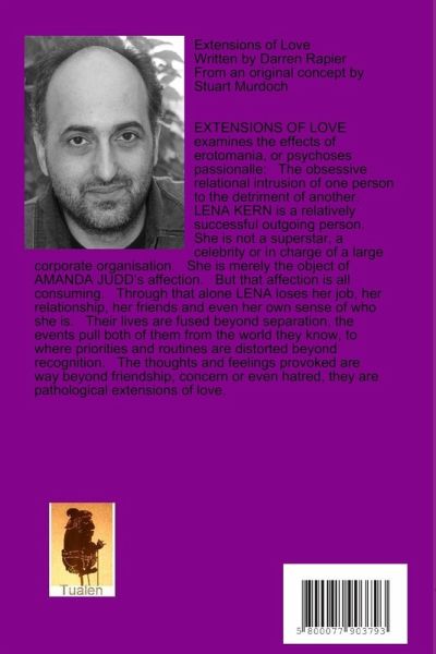 A play for two actors, written by Darren Rapier from an original concept by Stuart Murdoch. EXTENSIONS OF LOVE examines the effects of erotomania, or psychoses passionalle: The obsessive relational intrusion of one person to the detriment of another. LENA KERN is a relatively successful outgoing person. She is not a superstar, a celebrity or in charge of a large corporate organisation. She is merely the object of AMANDA JUDD's affection. But that affection is all consuming. Through that alone LENA loses her job, her relationship, her friends and even her own sense of who she is. Their lives…mehr