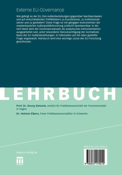 Wie gelingt es der EU, ihre Außenbeziehungen gegenüber Nachbarstaaten und auf entscheidenden Politikfeldern zu koordinieren, zu institutionalisieren und zu gestalten? Diese Frage ist mit gängigen Instrumenten der staatenbasierten Außenpolitikforschung schlecht beantwortbar. In diesem Band wird der Governanceansatz als analytisches Instrumentarium ausgearbeitet und, unter besonderer Berücksichtigung der normativen Basis der EU-Außenbeziehungen, in Fallstudien auf die oben gestellte Frage angewandt. Hierdurch wird eine wichtige Lücke der EU-Forschung geschlossen.