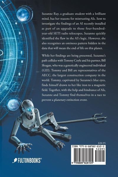 Suzanne Ray, a graduate student with a brilliant mind, has her reasons for mistrusting AIs. Sent to investigate the findings of an AI recently installed as part of an upgrade to those four-hundred-year-old SETI radio telescopes, Suzanne quickly identified the flaw in the AI's logic. However, she also recognizes an ominous pattern hidden in the data that will mean the end of life on this planet. While her findings are being presented, Suzanne's path collides with Tommy Coyle and his partner, Bill Shogan, who was a genetically engineered individual (GEI). Tommy and Bill are representatives of the AECC, the largest construction company in the world. Tommy, captivated by Suzanne's blue eyes, finds himself drawn to her like iron to a magnetic field. Together, with the help and hindrance of AIs, Suzanne and Tommy find themselves in a race to prevent a planetary extinction event.