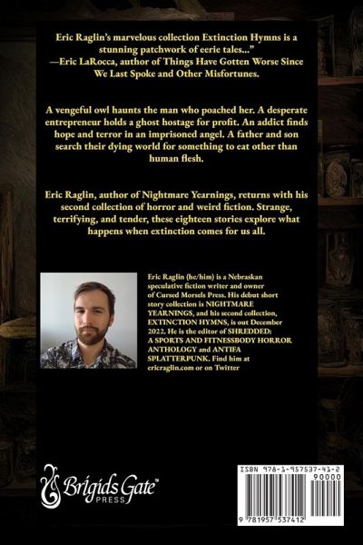 A vengeful owl haunts the man who poached her. A desperate entrepreneur holds a ghost hostage for profit. An addict finds hope and terror in an imprisoned angel. A father and son search their dying world for something to eat other than human flesh. Eric Raglin, author of Nightmare Yearnings, returns with his second collection of horror and weird fiction. Strange, terrifying, and tender, these eighteen stories explore what happens when extinction comes for us all.