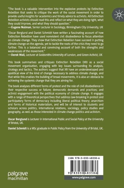 This book summarises and critiques Extinction Rebellion (XR) as a social movement organisation, engaging with key issues surrounding its analysis, strategy and tactics. The authors suggest that XR have an underdeveloped and apolitical view of the kind of change necessary to address climate change, and that while this enables the building of broad movements, it is also an obstacle to achieving the systemic change that they are aiming for.