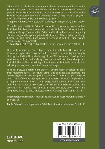 This book summarises and critiques Extinction Rebellion (XR) as a social movement organisation, engaging with key issues surrounding its analysis, strategy and tactics. The authors suggest that XR have an underdeveloped and apolitical view of the kind of change necessary to address climate change, and that while this enables the building of broad movements, it is also an obstacle to achieving the systemic change that they are aiming for.