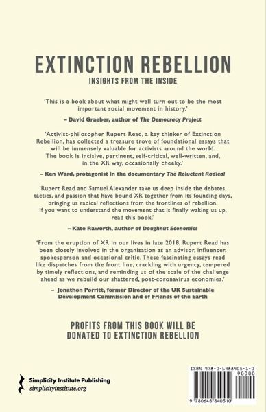 'Rupert Read and Samuel Alexander take us deep inside the debates, tactics, and passion that have bound Extinction Rebellion together from its founding days, bringing us radical reflections from the frontlines of rebellion. If you want to understand the movement that is finally waking us up, read this book.'- Kate Raworth, author of Doughnut Economics: Seven Ways to Think Like a 21st-Century Economist 'Invaluable reflections and next-step ideas right from the heart of arguably the most inspiring and important movement of the twenty first century'. - Mike Berners-Lee, author of There is no planet B: A Handbook for the Make or Break Years 'Everyone should read this book. It is short, and impassioned, but full of important information: above all an honest and practical plea for us to seize the moment for change urgently. It is inspirational. Please, for all our sakes, read it, and take its timely words to heart.'- Iain McGilchrist, author of The Master and his Emissary: The Divided Brain and the Making of the Western World 'The ecological emergency is the greatest challenge that humanity has ever faced, and Extinction Rebellion may be our last best chance to address it. Read this inside story of the most important social movement of our time.' - David Loy, author of Ecodharma: Buddhist Teachings for the Ecological Crisis 'From the eruption of XR in our lives in late 2018, Rupert Read has been closely involved in the organisation as an advisor, influencer, spokesperson and occasional critic. These fascinating essays read like dispatches from the front line, crackling with urgency, tempered by timely reflections, and reminding us of the scale of the challenge ahead as we rebuild our shattered, post-coronavirus economies.'- Jonathon Porritt, former Director of the UK Sustainable Development Commission and of Friends of the Earth 'Activist-philosopher Rupert Read, a key thinker of Extinction Rebellion, has collected a treasure trove of foundational essays, documenting the transformational XR UK experience, that will be immensely valuable for activists around the world trying to replicate that achievement. The book is incisive, pertinent, self-critical, well-written, and, in the XR way, occasionally cheeky. Anyone concerned with combating the broader wave of ecological collapse - that led to the pandemic and that is rising behind it - should read Read.'- Ken Ward, protagonist in the documentary The Reluctant Radical 'Most of us like to watch movies about people saving the world but too rarely do we even try to do it ourselves. Despite the situation so obviously calling for it! This is a book about what might well turn out to be the most important social movement in history.'- David Graeber, author of The Democracy Project: A History, a Crisis, a Movement