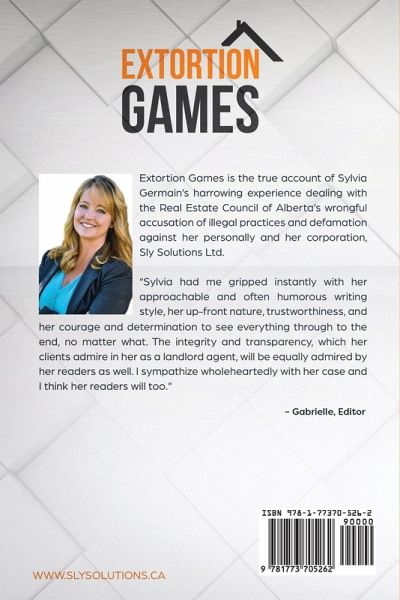 Extortion Games is the true account of Sylvia Germain's harrowing experience dealing with the Real Estate Council of Alberta's wrongful accusation of illegal practices and defamation against her personally and her corporation Sly Solutions Ltd.