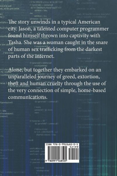 ¬The story unwinds in a typical American city. Jason, a talented computer programmer found himself thrown into captivity with Tasha. She was a woman caught in the snare of human sex trafficking from the darkest parts of the internet. Alone, but together they embarked on an unparalleled journey of greed, extortion, theft and human cruelty through the use of the very connection of simple, home-based communications.