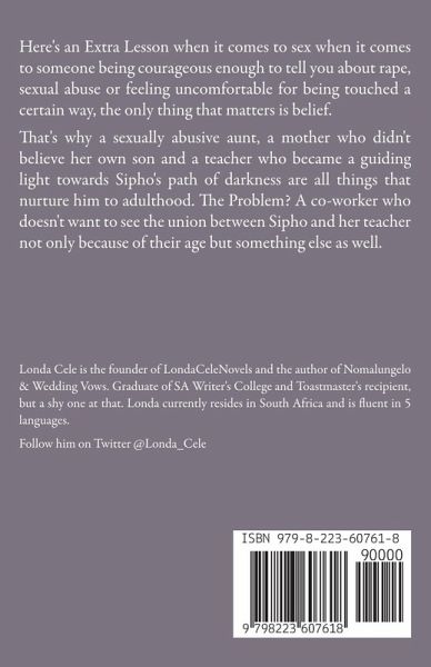 Here's an Extra Lesson when it comes to sex when it comes to someone being courageous enough to tell you about rape, sexual abuse or feeling uncomfortable for being touched a certain way, the only thing that matters is belief. That's why a sexually abusive aunt, a mother who didn't believe her own son and a teacher who became a guiding light towards Sipho's path of darkness are all things that nurture him to adulthood. The Problem? A co-worker who doesn't want to see the union between Sipho and her teacher not only because of their age but something else as well.