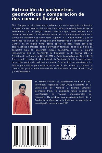 El río Ganges, en el subcontinente indio, es uno de los que más sedimentos transporta a los océanos del mundo. La erosión y la consiguiente carga de sedimentos son un peligro natural silencioso que puede afectar a los procesos hidráulicos de un sistema fluvial. La tasa de erosión física en la cuenca del Alaknanda es cinco veces superior a la media mundial, y el río Alaknanda es uno de los principales suministradores de sedimentos al río Ganges. La morfología fluvial podría aportar valiosos datos sobre las características históricas de la deformación tectónica de la región que se encuentra bajo él. Diferentes índices geomórficos como la Integral Hipsométrica (Hi), el Coeficiente de Elongación de la Cuenca (Eb), la Asimetría de la Cuenca de Drenaje (AF), el Perfil Longitudinal del Río, el Perfil Transversal, el Índice de Gradiente de la Corriente (SL) de la cuenca para desarrollar puntos de nudo en la cuenca. En este libro se investigaron los índices geomórficos para caracterizar el patrón del terreno y comparar la cuenca hidrográfica de los afluentes del río Alaknanda, a saber, Birahi Ganga y el río Nandakini.