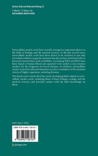 Extracellular nucleic acids have recently emerged as important players in the fields of biology and the medical sciences. In the last several years, extracellular nucleic acids have been shown to be involved in not only microbial evolution as genetic elements but also to have structural roles in bacterial communities, such as biofilms. Circulating DNA and RNA have been found in human blood and expected to be useful as non-invasive markers for the diagnosis of several diseases. In addition, extracellular nucleic acids have attracted attention as active modulators of the immune system of higher organisms, including humans.This book covers nearly all of the newly developing fields related to extracellular nucleic acids, including those of basic biology, ecology and the medical sciences, and provides readers with the latest knowledge on them.