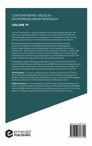 Reviewing the growth and development of enterprise and entrepreneurship extracurricular activities within Higher Education Institutions globally, Extracurricular Enterprise and Entrepreneurship Activity considers the form these activities take â their benefits and impacts upon participants, institutions, and the wider community.