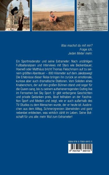 Ein Sportmoderator und seine Extrameter: Nach unzähligen Fußballanalysen und Interviews mit Stars wie Beckenbauer, Hoeneß oder Matthäus bricht eThomas Fleischmann auf zu seinem größten Abenteuer - 800 Kilometer auf dem Jakobsweg! Die Erlebnisse dieser Reise bringen ihn zurück an emotionale, kuriose aber auch dramatische Stationen. Vom Solisten eines Knabenchors, der auf den großen Bühnen stand und sogar für die Queen sang, bis zu seinem Aufsehen erregenden Outing live im Fernsehen bei Sky Sport. Er gibt verborgene Geschichten und private Gedanken preis, lässt teilhaben an der Faszination Sport und Medien und zeigt, wie er auch außerhalb des TV-Studios zu dem Menschen wurde, der er heute ist. Ausbrechen aus dem Alltag, Schmerzgrenzen überwinden und ganz nebenbei entdecken, was wirklich zählt im Leben. Seine Botschaft für uns alle: mehr Mut zum Extrameter!