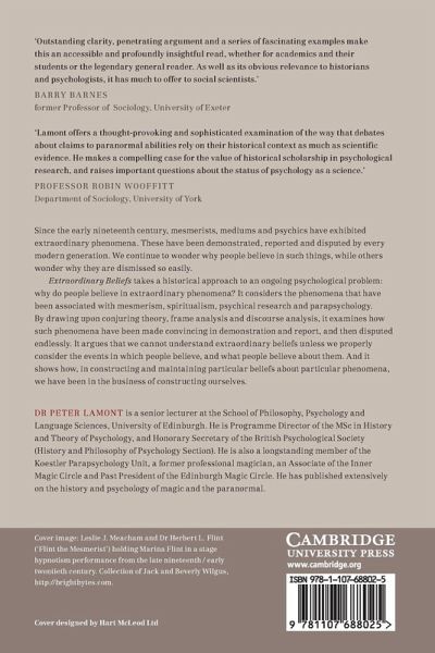 Since the early nineteenth century, mesmerists, mediums and psychics have exhibited extraordinary phenomena. These have been demonstrated, reported and disputed by every modern generation. We continue to wonder why people believe in such things, while others wonder why they are dismissed so easily. Extraordinary Beliefs takes a historical approach to an ongoing psychological problem: why do people believe in extraordinary phenomena? It considers the phenomena that have been associated with mesmerism, spiritualism, psychical research and parapsychology. By drawing upon conjuring theory, frame analysis and discourse analysis, it examines how such phenomena have been made convincing in demonstration and report, and then disputed endlessly. It argues that we cannot understand extraordinary beliefs unless we properly consider the events in which people believe, and what people believe about them. And it shows how, in constructing and maintaining particular beliefs about particular phenomena, we have been in the business of constructing ourselves.