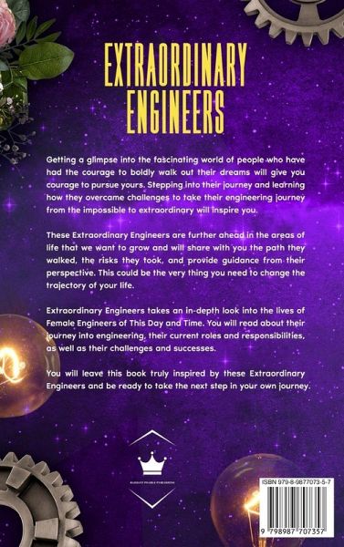 Getting a glimpse into the fascinating world of people who have had the courage to boldly walk out their dreams will give you the courage to pursue yours. Stepping into their shoes and learning how they overcame challenges to take their engineering journey from the impossible to the extraordinary will inspire you. These extraordinary engineers are further ahead in the areas of life where we desire to grow. They let you in to see the paths they walked, the risks they took, and the guidance they provided from their perspectives. This could be the very thing you need to change the trajectory of your life. Extraordinary Engineers takes an in-depth look into the lives of Female Engineers of This Day and Time. You will read about their journeys into engineering, their current roles and responsibilities, as well as their challenges and successes. You will be inspired by these extraordinary engineers and be ready to take the next step in your own journey. Getting a glimpse into the fascinating world of people who have had the courage to boldly walk out their dreams will give you the courage to pursue yours. Stepping into their shoes and learning how they overcame challenges to take their engineering journey from the impossible to the extraordinary will inspire you. These extraordinary engineers are further ahead in the areas of life where we desire to grow. They let you in to see the paths they walked, the risks they took, and the guidance they provided from their perspectives. This could be the very thing you need to change the trajectory of your life. Extraordinary Engineers takes an in-depth look into the lives of Female Engineers of This Day and Time. You will read about their journeys into engineering, their current roles and responsibilities, as well as their challenges and successes. You will be inspired by these extraordinary engineers and be ready to take the next step in your own journey.