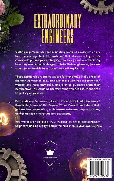 etting a glimpse into the fascinating world of people who have had the courage to boldly walk out their dreams will give you the courage to pursue yours. Stepping into their shoes and learning how they overcame challenges to take their engineering journey from the impossible to the extraordinary will inspire you. These extraordinary engineers are further ahead in the areas of life where we desire to grow. They let you in to see the paths they walked, the risks they took, and the guidance they provided from their perspectives. This could be the very thing you need to change the trajectory of your life. Extraordinary Engineers takes an in-depth look into the lives of Female Engineers of This Day and Time. You will read about their journeys into engineering, their current roles and responsibilities, as well as their challenges and successes. You will be inspired by these extraordinary engineers and be ready to take the next step in your own journey. Getting a glimpse into the fascinating world of people who have had the courage to boldly walk out their dreams will give you the courage to pursue yours. Stepping into their shoes and learning how they overcame challenges to take their engineering journey from the impossible to the extraordinary will inspire you. These extraordinary engineers are further ahead in the areas of life where we desire to grow. They let you in to see the paths they walked, the risks they took, and the guidance they provided from their perspectives. This could be the very thing you need to change the trajectory of your life. Extraordinary Engineers takes an in-depth look into the lives of Female Engineers of This Day and Time. You will read about their journeys into engineering, their current roles and responsibilities, as well as their challenges and successes. You will be inspired by these extraordinary engineers and be ready to take the next step in your own journey.