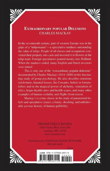 More than a century before Alan Greenspan coined the phrase "irrational exuberance" to describe the speculative bubble inflating technology stocks, Charles Mackay was recording the history of "tulipomania," a speculative madness surrounding the value of tulips in the 18th century that was the ruin of many Dutch and English investors. This is only one of the "extraordinary popular delusions" documented by Mackay in a fascinating study of group psychology. He also describes notorious witch hunts, haunted houses, the Crusades, beliefs in fortunetellers and in the magical power of alchemy, veneration of relics, bogus health cures and health scares, and many other examples of human credulity and flights from reason. This work is a true classic in the study of paranormal beliefs, a funny, shocking, and unbelievable yet true history of human gullibility.
