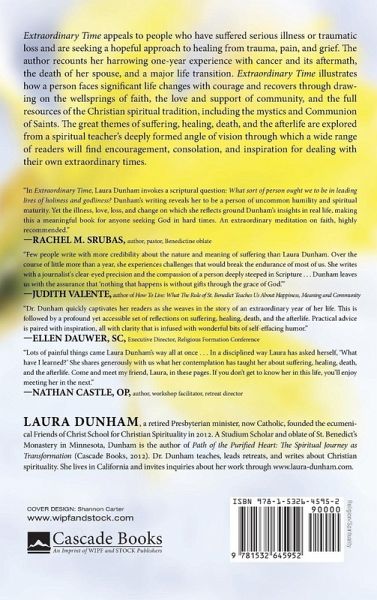 Extraordinary Time appeals to people who have suffered serious illness or traumatic loss and are seeking a hopeful approach to healing from trauma, pain, and grief. The author recounts her harrowing one-year experience with cancer and its aftermath, the death of her spouse, and a major life transition. Extraordinary Time illustrates how a person faces significant life changes with courage and recovers through drawing on the wellsprings of faith, the love and support of community, and the full resources of the Christian spiritual tradition, including the mystics and Communion of Saints. The great themes of suffering, healing, death, and the afterlife are explored from a spiritual teacher's deeply formed angle of vision through which a wide range of readers will find encouragement, consolation, and inspiration for dealing with their own extraordinary times.