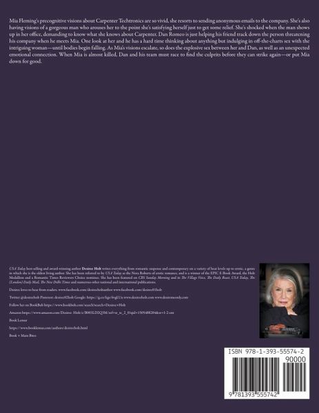 Mia Fleming's precognitive visions about Carpenter Techtronics are so vivid, she resorts to sending anonymous emails to the company. She's also having visions of a gorgeous man who arouses her to the point she's satisfying herself just to get some relief. She's shocked when the man shows up in her office, demanding to know what she knows about Carpenter. Dan Romeo is just helping his friend track down the person threatening his company when he meets Mia. One look at her and he has a hard time thinking about anything but indulging in off-the-charts sex with the intriguing woman—until bodies begin falling. As Mia's visions escalate, so does the explosive sex between her and Dan, as well as an unexpected emotional connection. When Mia is almost killed, Dan and his team must race to find the culprits before they can strike again—or put Mia down for good.