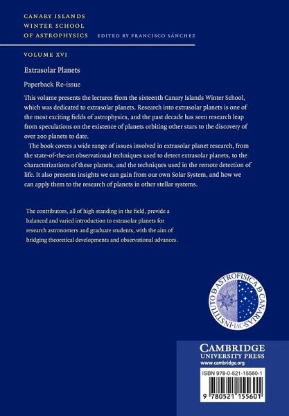 This 2007 volume presents the lectures from the sixteenth Winter School of the Instituto de Astrofísica de Canarias, which was dedicated to extrasolar planets. Research into extrasolar planets is one of the most exciting fields of astrophysics, and the past decade has seen a research leap from speculations on the existence of planets orbiting other stars to the discovery of around 200 planets to date. The book covers a wide range of issues, from the state-of-the-art observational techniques used to detect extrasolar planets, to the characterizations of these planets, and the techniques used in the remote detection of life. It also looks at the insights we can gain from our own Solar System, and how we can apply them. The contributors, all of high-standing in the field, provide a balanced and varied introduction to extrasolar planets for research astronomers and graduate students, bridging theoretical developments and observational advances.