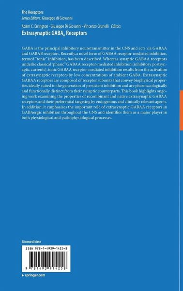 GABA is the principal inhibitory neurotransmitter in the CNS and acts via GABAA and GABAB receptors. Recently, a novel form of GABAA receptor-mediated inhibition, termed "tonic" inhibition, has been described. Whereas synaptic GABAA receptors underlie classical "phasic" GABAA receptor-mediated inhibition (inhibitory postsynaptic currents), tonic GABAA receptor-mediated inhibition results from the activation of extrasynaptic receptors by low concentrations of ambient GABA. Extrasynaptic GABAA receptors are composed of receptor subunits that convey biophysical properties ideally suited to the generation of persistent inhibition and are pharmacologically and functionally distinct from their synaptic counterparts. This book highlights ongoing work examining the properties of recombinant and native extrasynaptic GABAA receptors and their preferential targeting by endogenous and clinically relevant agents. In addition, it emphasizes the important role of extrasynaptic GABAA receptors in GABAergic inhibition throughout the CNS and identifies them as a major player in both physiological and pathophysiological processes.