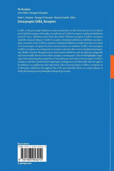 GABA is the principal inhibitory neurotransmitter in the CNS and acts via GABAA and GABAB receptors. Recently, a novel form of GABAA receptor-mediated inhibition, termed "tonic" inhibition, has been described. Whereas synaptic GABAA receptors underlie classical "phasic" GABAA receptor-mediated inhibition (inhibitory postsynaptic currents), tonic GABAA receptor-mediated inhibition results from the activation of extrasynaptic receptors by low concentrations of ambient GABA. Extrasynaptic GABAA receptors are composed of receptor subunits that convey biophysical properties ideally suited to the generation of persistent inhibition and are pharmacologically and functionally distinct from their synaptic counterparts. This book highlights ongoing work examining the properties of recombinant and native extrasynaptic GABAA receptors and their preferential targeting by endogenous and clinically relevant agents. In addition, it emphasizes the important role of extrasynaptic GABAA receptors in GABAergic inhibition throughout the CNS and identifies them as a major player in both physiological and pathophysiological processes.