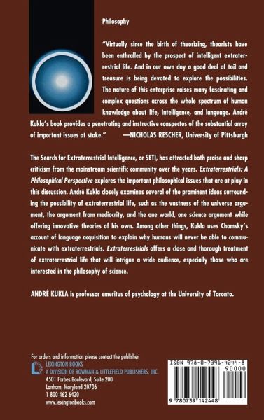 In this short and highly technical monograph, retired psychology professor Andre Kukla examines the possibility of communicating with extraterrestrials. John Rimmer's Magonia Blog, 13 January 2010 Virtually since the birth of theorizing, theorists have been enthralled by the prospect of intelligent extraterrestrial life. And in our own day a good deal of toil and treasure is being devoted to explore the possibilities. The nature of this enterprise raises many fascinating and complex question across the whole spectrum of human knowledge about life, intelligence, and language. Kukla's book provides a penetrating and instructive conspectus of the substantial array of important issue at stake. -- Nicholas Rescher, University of Pittsburgh