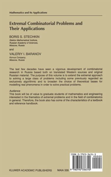 Combinatorial research has proceeded vigorously in Russia over the last few decades, based on both translated Western sources and original Russian material. The present volume extends the extremal approach to the solution of a large class of problems, including some that were hitherto regarded as exclusively algorithmic, and broadens the choice of theoretical bases for modelling real phenomena in order to solve practical problems.