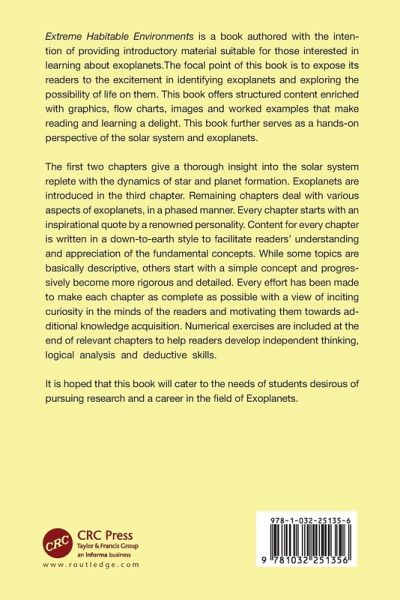 Extreme Habitable Environments is a book authored with the intention of providing introductory material suitable for those interested in learning about exoplanets. Focal point of this book is to expose its readers to the excitement in identifying exoplanets and exploring the possibility of life on them.