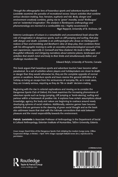 In recent years, there has been an increased engagement throughout the social sciences with the study of extreme places and practices. Dangerous games and adventure tours have shifted from being marginal, exotic or mad to being more than merely acceptable. They are now exemplary, mainstream even: there are a variety of new types, increasing numbers of people are doing them and they are being appropriated and have infiltrated more and more contexts. This book argues that hazardous sports and adventure tourism have become rather paradoxical. As a set of activities where players and holidaymakers are closer to death or danger than they would otherwise be, they are the complete opposite of normal games or vacations. Adventure sports and tours reverse the general definition of a holiday as being an escape from the seriousness of everyday life, as in most cases, they are innately serious, requiring as they do 'life or death' decision-making. Beginning with the rise in colonial explorations and moving on to consider the Dangerous Sports Club of Oxford, this book examines the increasing phenomena of adventure sports such as bungy jumping, cliff jumping or 'tomb-stoning', surfing and parkour within a framework of positive risk. It explores how certain assumptions about knowledge, agency, the body and nature are beginning to coalesce around newly developing spheres of social relations. Additionally, extreme games have become activities that are germane to the dawning of green social thought and so the book also addresses issues that deal with the intimate connections that exist between pleasure and the moral responsibility towards the environment.