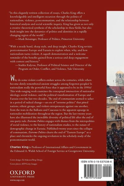 In this wide-ranging set of essays, Charles King examines the conceptual intersection of nationalist ideology, social violence, and the political transformation of Europe and Eurasia over the last two decades. Extreme Politics charts the end of "Eastern Europe" as a place and chronicles the ongoing revolution in the scholarly study of Russia, the Balkans, and the wider postcommunist world.