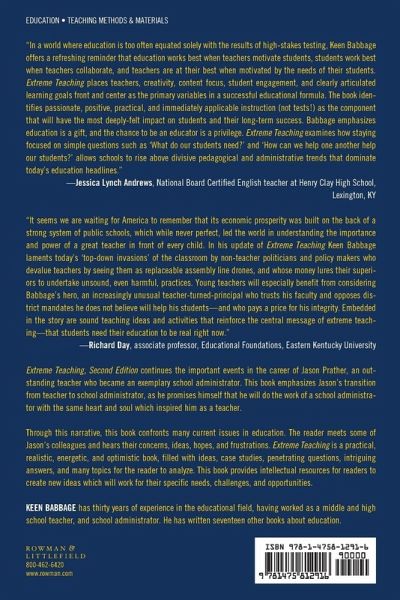 Extreme Teaching is a practical, realistic, energetic, and optimistic book, filled with ideas, case studies, penetrating questions, intriguing answers, and many topics for the reader to analyze. This book provides intellectual resources for readers to create new ideas which will work for their specific needs, challenges, and opportunities.
