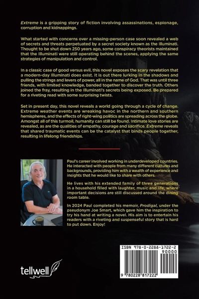 Extreme is a gripping story of fiction involving assassinations, espionage, corruption and kidnappings. What started with concerns over a missing-person case soon revealed a web of secrets and threats perpetuated by a secret society known as the Illuminati. Thought to be shut down 250 years ago, some conspiracy theorists maintained that the Illuminati were still operating behind the scenes, applying the same strategies of manipulation and control. In a classic case of good versus evil, this novel exposes the scary revelation that a modern-day Illuminati does exist. It is out there lurking in the shadows and pulling the strings and levers of power, all in the name of God. That was until three friends, with limited knowledge, banded together to discover the truth. Others joined the fray, resulting in the Illuminati's secrets being exposed. Be prepared for a riveting read with some surprising twists. Set in present day, this novel reveals a world going through a cycle of change. Extreme weather events are wreaking havoc in the northern and southern hemispheres, and the effects of right-wing politics are spreading across the globe. Amongst all of this turmoil, humanity can still be found. Intimate love stories are revealed, as are the qualities of empathy, courage and sacrifice. Extreme reveals that shared traumatic events can be the catalyst that binds people together, resulting in lifelong friendships.