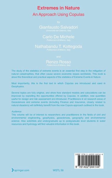 "This monograph deals with both theoretical and practical aspects of the mathematical theory of extremes. ... The book surely will be interesting and useful to researchers and practitioners in the areas of geophysics and environmental sciences and engineering. It can be also useful to any one interested in having a rigorous summary of the main results and modern developments of the theory of extreme events in the context of physical applications." (Jaume Masoliver, Journal of Statistical Physics, Vol. 134, 2009)