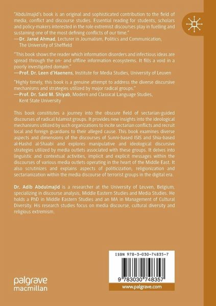This book constitutes a journey into the obscure field of sectarian-guided discourses of radical Islamist groups. It provides new insights into the ideological mechanisms utilized by such organizations to incite sectarian conflicts and recruit local and foreign guardians to their alleged cause. This book examines diverse aspects and dimensions of the discourses of Sunni-based ISIS and Shia-based al-Hashd al-Shaabi and explores manipulative and ideological discursive strategies utilized by media outlets associated with these groups. It delves into linguistic and contextual activities, implicit and explicit messages within the discourses of various media outlets operating in the heart of the Middle East. It also scrutinizes and explains aspects of politicization, religionization and sectarianization within the media discourse of terrorist groups in the digital era.