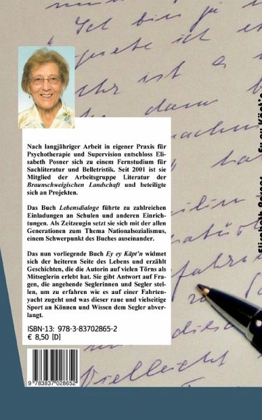 Ey ey Käpt'n widmetsich der heiteren Seite des Lebens und erzähltGeschichten, die die Autorin auf vielen Törns alsMitseglerin erlebt hat. Sie gibt Antwort auf Fragen,die angehende Seglerinnen und Segler stellen,um zu erfahren wie es auf einer Fahrtenyachtzugeht und was dieser raue und vielseitigeSport an Können und Wissen dem Segler abverlangt.