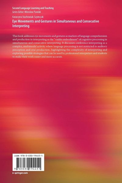 This book addresses eye movements and gestures as markers of language comprehension and production in interpreting as the "visible embodiment" of cognitive processing in simultaneous and consecutive interpreting. It discusses conference interpreting as a complex, multimodal activity where language processing is not restricted to auditory perception and oral production, highlighting the complexity of interpreting and exploring possible strategies that can be used by professional interpreters and students to make their work easier and more accurate.
