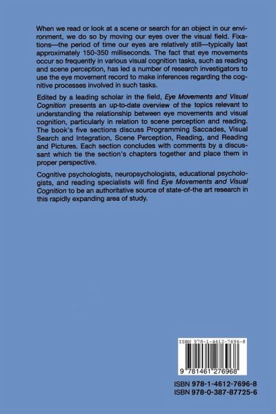 1 Eye Movements and Visual Cognition: Introduction.- Section 1 Programming Saccades.- 2 Programming of Stimulus-Elicited Saccadic Eye Movements.- 3 Saccadic Reaction Time: Implications for Reading, Dyslexia, and Visual Cognition.- 4 Orienting of Visual Attention.- 5 Planning and Producing Saccadic Eye Movements.- 6 Programming Saccades: The Role of Attention.- Section 2 Visual Search and Integration.- 7 Moment-to-Moment Control of Saccadic Eye Movements: Evidence from Continuous Search.- 8 Spatial Memory and Integration Across Saccadic Eye Movements.- 9 Visual Memory Within and Across Fixations.- 10 What Is Integrated Across Fixations?.- 11 The Matter and Mechanisms of Integration.- Section 3 Scene Perception.- 12 Effects of Visual Degradation on Eye-Fixation Durations, Perceptual Processing, and Long-Term Visual Memory.- 13 An Exploration of the Effects of Scene Context on Object Identification.- 14 Scene-Context Effects and Models of Real-World Perception.- 15 Visual Attention and Eye Movement Control During Reading and Picture Viewing.- 16 Making a Scene: The Debate about Context Effects for Scenes and Sentences.- Section 4 Reading.- 17 Perception and Cognition in Reading: Where is the Meeting Point?.- 18 Early Lexical Effects when Fixating a Word in Reading.- 19 Sentence Context Effects on Lexical Access.- 20 Optimal Viewing Position in Words and the Strategy-Tactics Theory of Eye Movements in Reading.- 21 Integrating Text Across Fixations in Reading and Copytyping.- 22 Eye Movements and Reading Processes.- Section 5 Reading and Pictures.- 23 The Spatial Coding Hypothesis.- 24 Tracing the Course of Sentence Comprehension: How Lexical Information is Used.- 25 Attention Allocation with Overlapping Sound, Image, and Text.- 26 The Mechanics of Comprehension and Comprehension of Mechanics.- 27 Visual Analysis of Cartoons: A View from the Far Side.- 28 Eye Movements and Complex Comprehension Processes.