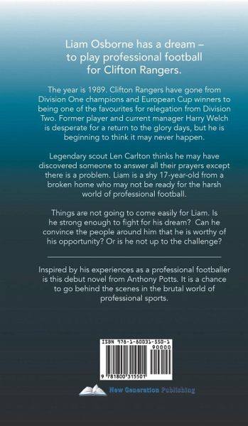 Liam Osborne has a dream - to play professional football for Clifton Rangers. The year is 1989. Clifton Rangers have gone from Division One champions and European Cup winners to being one of the favourites for relegation from Division Two. Former player and current manager Harry Welch is desperate for a return to the glory days, but he is beginning to think it may never happen. Legendary scout Len Carlton thinks he may have discovered someone to answer all their prayers except there is a problem. Liam is a shy 17-year-old from a broken home who may not be ready for the harsh world of professional football. Things are not going to come easily for Liam. Is he strong enough to fight for his dream? Can he convince the people around him that he is worthy of his opportunity? Or is he not up to the challenge? Inspired by his experiences as a professional footballer is this debut novel from Anthony Potts. It is a chance to go behind the scenes in the brutal world of professional sports. Other books by Anthony Potts: Read the next book in the series: Star on the Rise Follow Lia