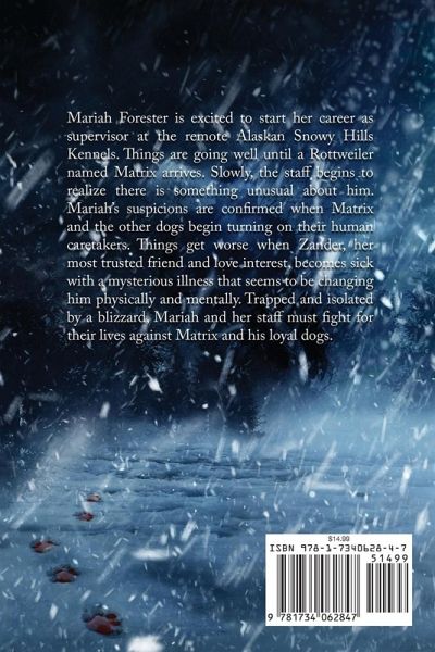Mariah Forester is excited to start her career as supervisor at the remote Alaskan Snowy Hills Kennels. Things are going well until a Rottweiler named Matrix arrives. Slowly, the staff begins to realize there is something unusual about him. Mariah's suspicions are confirmed when Matrix and the other dogs begin turning on their human caretakers. Things get worse when Zander her most trusted friend and love interest, becomes sick with a mysterious illness that seems to be changing him physically and mentally. Trapped and isolated by a blizzard, Mariah and her staff must fight for their lives against Matrix's and his loyal dogs.…mehr