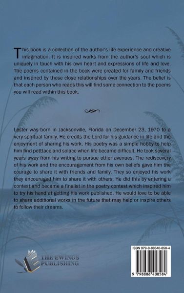 This book is a collection of the author's life experience and creative imagination. It is inspired works from the author's soul which is uniquely in touch with his own heart and expressions of life and love. The poems contained in the book were created for family and friends and inspired by those close relationships over the years. The belief is that each person who reads this will find some connection to the poems you will read within this book.