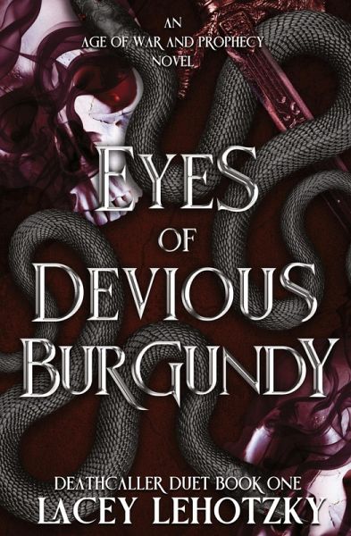 In the midst of war, love might be the deadliest weapon of all. For ten long years, Angels and Demons have waged a brutal war, with one man standing between the Demons and total annihilation: Rokath, the cruel and merciless general feared for his power to raise the dead. A prophecy whispers of a woman with eyes of devious burgundy who will shift the balance of power, but Rokath has plans of his own. After a deadly plague wipes out millions of Demons across the realm, Rokath issues an unforgiving command-every family must send one male to the front or face being put to the sword. Assyria, a sharp-tongued, burgundy-eyed farmgirl, is trapped in an abusive marriage to a nobleman who only values her for the power she could give their offspring. Her life unravels when Rokath's soldiers arrive with the decree. A violent clash leaves her covered in blood-and running for her life. With her rare magic, she assumes the form of her slain husband and marches off to war, hiding among the very men she's sworn to hate for killing her family. In a society where women must remain veiled and pure, Assyria's survival hinges on secrecy. Yet nothing can prepare her for the sharp, sinister gaze of Rokath, whose punishments for disobedience are swift and savage. When their paths cross, fate sets into motion a dangerous chain of events neither of them can control. With tension crackling between them and thousands of lives balanced on a knife's edge, will their unlikely connection ignite salvation for the Demons-or doom them to destruction? Eyes of Devious Burgundy is the first book in the Deathcaller Duet, a slow meet, hate-to-love, banter-filled high dark fantasy romance with a vicious, dangerous MMC and a fiery FMC. Perfect for fans of A Choice of Light and Dark, Carissa Broadbent, and LJ Andrews. An Age of War and Prophecy is a series of interconnected duets and standalones centering around the world-altering events of the Great War between the Angels and Demons. It contains mature, dark themes that some readers might find disturbing. A full TW list is available on the author's website.