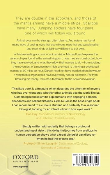 The spectacular capacity to see the world around them has evolved in many different ways among animals. From scallops and jumping spiders to humans, Michael Land explores the extraordinary variety of eyes in nature, how they work, and how they enable their bearers to survive.