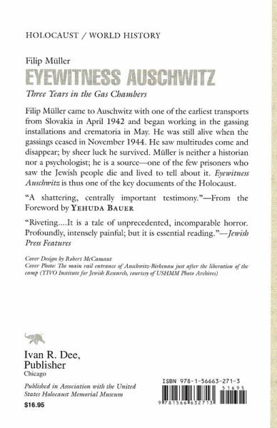 Filip MÃ ller's firsthand account of three years in the gas chambers. One of the few prisoners who saw the Jewish people die and lived to tell about it, MÃ ller has written one of the key documents of the Holocaust.