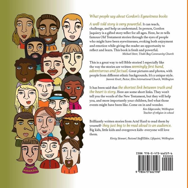 Gordon Jaquiery has become well known for his style of retelling stories in the Bible. He coves popular stories and those less well known. These stories are all originally spoken, then edited for this written version. First read aloud to children, they are now suitable to be read by all ages. This is Gordon's sixth volume and contains another seventeen thought provoking and inspiring stories from people who were near the action in stories of God and Jesus. 38 pages, with full page colour photographs placing each story in a modern setting. These inspiring and quirky stories, from the author's imagination, are based on stories straight from the Bible. What would the story look like from an eyewitness? A different point of view from the traditional stories, these tales challenge the reader to think for themselves about the true impact of God in their lives.