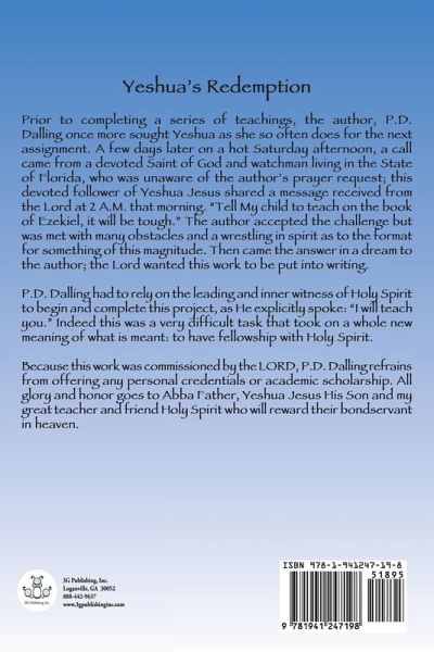 Prior to completing a series of teachings, the author, P.D. Dalling once more sought Yeshua as she so often does for the next assignment. A few days later on a hot Saturday afternoon, a call came from a devoted Saint of God and watchman living in the State of Florida, who was unaware of the author's prayer request; this devoted follower of Yeshua Jesus shared a message received from the Lord at 2 A.M. that morning. "Tell My child to teach on the book of Ezekiel, it will be tough." The author accepted the challenge but was met with many obstacles and a wrestling in spirit as to the format for something of this magnitude. Then came the answer in a dream to the author; the Lord wanted this work to be put into writing. P.D. Dalling had to rely on the leading and inner witness of Holy Spirit to begin and complete this project, as He explicitly spoke: "I will teach you." Indeed this was a very difficult task that took on a whole new meaning of what is meant: to have fellowship with Holy Spirit. Because this work was commissioned by the LORD, P.D. Dalling refrains from offering any personal credentials or academic scholarship. All glory and honor goes to Abba Father, Yeshua Jesus His Son and my great teacher and friend Holy Spirit who will reward their bondservant in heaven.