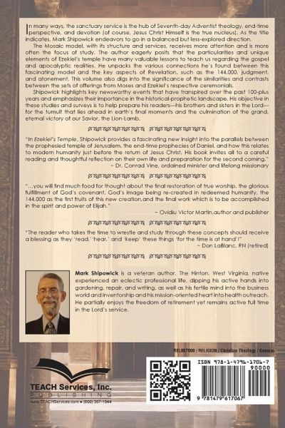 In many ways, the sanctuary service is the hub of Seventh-day Adventist theology, end-time perspective, and devotion (of course, Jesus Christ Himself is the true nucleus). As the title indicates, Mark Shipowick endeavors to go in a balanced but less-explored direction. The Mosaic model, with its structure and services, receives more attention and is more often the focus of study. The author eagerly posits that the particularities and unique elements of Ezekiel's temple have many valuable lessons to teach us regarding the gospel and apocalyptic realities. He unpacks the various connections he's found between this fascinating model and the key aspects of Revelation, such as the 144,000, judgment, and atonement. This volume also digs into the significance of the similarities and contrasts between the sets of offerings from Moses and Ezekiel's respective ceremonials. Shipowick highlights key newsworthy events that have transpired over the past 100-plus years and emphasizes their importance in the historical-prophetic landscape. His objective in these studies and surveys is to help prepare his readers-his brothers and sisters in the Lord-for the tumult that lies ahead in earth's final moments and the culmination of the grand, eternal victory of our Savior, the Lion-Lamb. "In Ezekiel's Temple, Shipowick provides a fascinating new insight into the parallels between the prophesied temple of Jerusalem, the end-time prophecies of Daniel, and how this relates to modern humanity just before the return of Jesus Christ. His book invites all to a careful reading and thoughtful reflection on their own life and preparation for the second coming." ~ Dr. Conrad Vine, ordained minister and lifelong missionary "...you will find much food for thought about the final restoration of true worship, the glorious fulfillment of God's covenant, God's image being re-created in redeemed humanity, the 144,000 as the first fruits of this new creation, and the final work which is to be accomplished in the spirit and power of Elijah." ~ Ovidiu Victor Martin, author and publisher "The reader who takes the time to wrestle and study through these concepts should receive a blessing as they 'read,' 'hear,' and 'keep' these things 'for the time is at hand'!" ~ Don LaBlanc, RN (retired)
