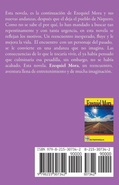 Esta novela, es la continuación de Ezequiel Mora y sus nuevas andanzas, después que el deja el pueblo de Niquero. Como no se sabe el por qué, lo han mandado a buscar tan repentinamente y con tanta urgencia, en esta novela se reflejan los motivos. Un reencuentro inesperado, fluye y le mejora la vida. El encuentro con un personaje del pasado, se le convierte en una andanza que no imagina. Las consecuencias de lo que le tocaría vivir, el ya había pensado que culminaría esa pesadilla, sin embargo, no se había acabado. Esta novela. Ezequiel Mora, un reencuentro, aventura llena de entretenimiento y de mucha imaginación.