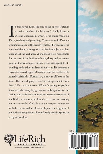 In this novel, Ezra, the son of the apostle Peter, is an active member of a fisherman’s family living in ancient Capernaum, where Jesus stayed while on Earth, teaching and preaching. Twelve-year-old Ezra is a working member of the family, typical of boys his age. He is excited about traveling with his family and Jesus as they walk about the vast area. A shepherd, he is responsible for the care of the family’s animals, sheep and an ornery goat, and other assigned duties. He is intelligent, hard-working, and anxious to learn about Jesus. He becomes a successful eavesdropper. Of course there are conflicts. He secretly befriends a Roman boy, enemy to all Jews at the time. Their developing friendship is important to both boys. Life at that time was difficult for young people, but there were also many happy times as well as problems. The actions and incidents are based on extensive research of the Bible and many other historic references concerning the ancient world. Only Ezra as the imaginary character with the events and incidents with Jesus are a figment of the author’s imagination. It could easily have happened to a boy at that time.
