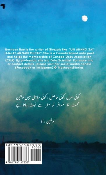 If you love Urdu Poetry , this book will definitely add value to your book collection The author, Nosheen Rao is the writer of Ghazals like "UN ANKHO SAY UJALAY AB NAHI MILTAY". She is a Canada based urdu poet and holds the membership of Canada Urdu Association (CUA). For more info or contact details , please visit her social media handle (Facebook or Instagram ) at "NosheensDiaries " Please note this is a Urdu poetry book and written in Urdu Text.