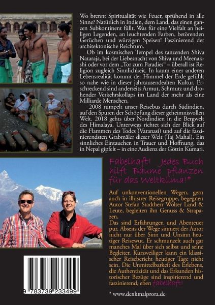 Wo brennt Spiritualität wie Feuer, sprühend in alleSinne? Natürlich in Indien, dem Land, das einen gan-zen Subkontinent füllt. Was für eine Vielfalt an hei -ligen Legenden, an leuchtenden Farben, betörendenGerüchen und würzigen Speisen! Faszinierend derarchitektonische Reichtum.Ob im kosmischen Tempel des tanzenden ShivaNataraja, bei der Liebesnacht von Shiva und Meenak-shi oder vor dem "Tor zum Paradies" - überall ist Re-ligion zugleich Sinnlichkeit. In kaum einer anderenLebensrealität kommt der Himmel der Erde gefühltso nahe wie in dieser jahrtausendealten Kultur. Er-schreckend sind anderseits Armut, Schmutz und dro-hender Verkehrskollaps im Land der mehr als eineMilliarde Menschen.2008 rumpelt unser Reisebus durch Südindien,auf den Spuren der Schöpfung dieser geheimnisvollenWelt. 2018 gehts über Nordindien in die Bergweltdes Himalaya. Unterwegs richtet sich der Blick aufdie Flammen des Todes (Varanasi) und auf die faszi -nierendsten Grabmäler dieser Welt (Taj Mahal). Einsinnliches Eintauchen in Trauer und Hoffnung, dasin Nepal gipfelt - in eine Audienz der Göttin Kumari.Fabelhaft! Jedes Buch hilft Bäume pflanzen für das Weltklima!