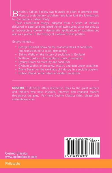 Britain's Fabian Society was founded in 1884 to promote non-Marxist evolutionary socialism, and later laid the foundations for the nation's Labour Party. These educational essays, adapted from a series of lectures delivered in 1889 and published the following year, serve not only as an introductory course in democratic applications of socialism but also as a primer in the history of modern British politics. Essays include. . George Bernard Shaw on the economic basis of socialism, and transitioning to social democracy . Sidney Webb on the history of socialism in England . William Clarke on the capitalist roots of socialism . Sydney Oliver on morality and socialism . Graham Wallas on property, wealth, and debt under socialism . Annie Besant on the workings of industry in a socialist system . Hubert Bland on the future of modern socialism.